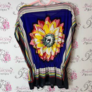 Bold blouse with a large floral design. Features vibrant stripes and a relaxed fit. Ideal for a stylish look.stretchy. Small. Get ready for an abundance of compliments! π Youβll be celebrated for your exceptional taste! π