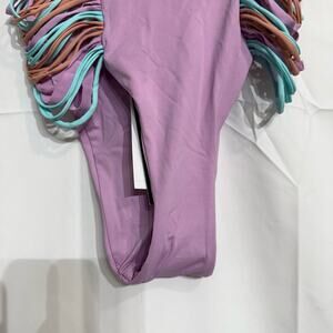 New with tags small purple, pink and teal bikini bottom swimsuit by Aqua in excellent brand new condition.