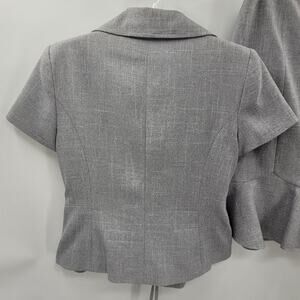 Isabella Suits Vintage Belted 3 Button Short Sleeve Ruffled Trim Midi Skirt Set