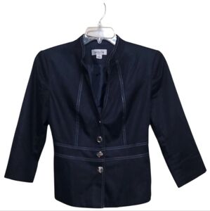 Isabella Women Navy Blue Belted Button Front Blazer Jacket Size 10