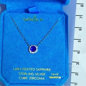 Brand new in box Elegant Isabella m necklace featuring a stunning blue lab created sapphire. Crafted from sterling silver for a timeless look. 16” +2” extender.