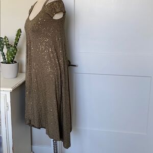 This design simplifies after hours style with a super luxury yet effortless take on sequined jersey. In a rich hue of bronzed khaki this piece needs pairing with the simplest of accessories - add your favorite heels and piece of statement jewelery for the epitome of understated chic.
