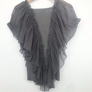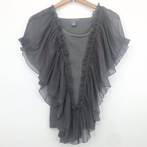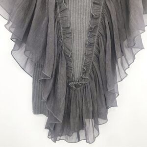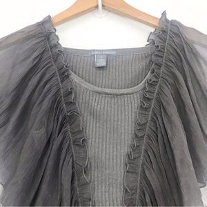 Isabella Rodriguez Gray Knit Ruffle Chiffon Flutter Sleeve Blouse