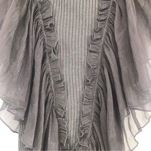 Isabella Rodriguez Gray Knit Ruffle Flutter Sleeve Blouse