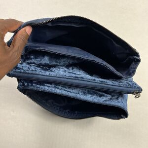 Isabella Scott Blue Velvet Clutch Cosmetic Bag 3 Zip Pockets Make-up Pouch FLAW