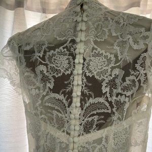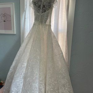 NEW without tags. This dress was purchased in Kleinfeld's in NYC and never worn. Size 6, has not been altered in any way. Beautiful lace and buttoned back detail (zipper). Gorgeous.