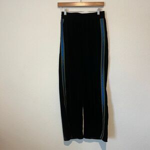 Isabelle Blanche Black Velvet Blue Side-Stripe Track Pants Women's Size XS