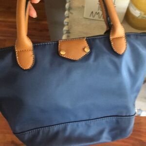 Isabelle Blue and tan nylon handbag