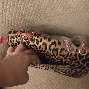 Elevate your style with the Leopard Print Faux Vegan Leather Bag. This chic accessory features a bold leopard pattern, perfect for making a statement. Crafted with vegan leather, it's both stylish and ethical. The bag's red accents add a pop of color, making it a versatile addition to any wardrobe.