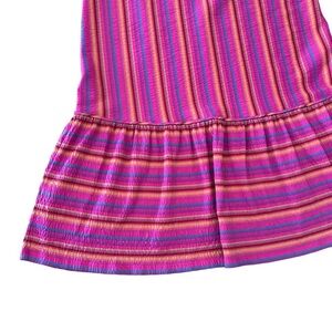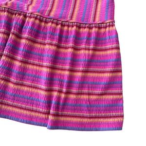 Super cute maxi skirt worn just two times. Super flattering because of the vertical stripes and so cute in spring and summer. Slightly oversized but mostly that's because it is intended to be worn lower on the waist so it doesn't really work as a high waisted skirt. Really cute with a denim jacket in cooler spring & fall months.