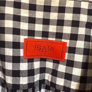 Isaia Men's Black & White Plaid Long Sleeve Shirt Sz 18 / 45 Button Up