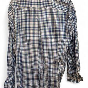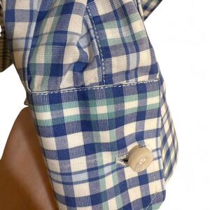 Size 18 / 45 men's plaid long sleeve shirt. Blue, white and green 100% cotton button down work shirt. Worn once or twice and was forgotten about in the closet. Made in Napoli, Italy, great quality for work. MSRP $695.