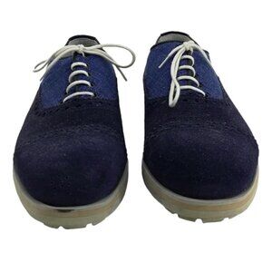 Isaia Napoli Blue Suede Brogues Oxford Loafers Size 6.5 US Mens 7.5 Womens 9.5