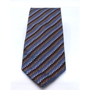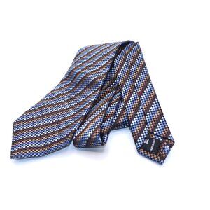 Isaia Napoli Men's Silk Tie Checkered Pattern Made In Italy Brown & Blue Luxury