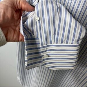 Isaia Striped Button Down Men’s Dress Shirt Blue White Size 17 (43)