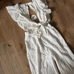 Isalis NWT White Eyelet Lace Jumpsuit with Tieback Size M