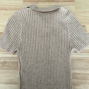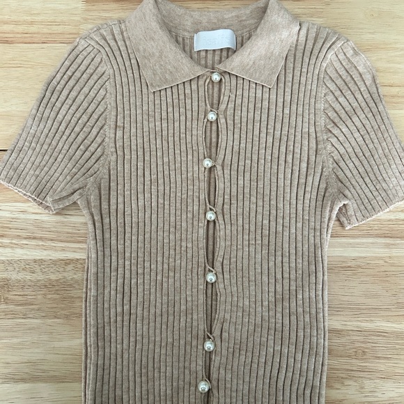 Tan short sleeved sweater with pearl buttons. Only worn a handful of times.