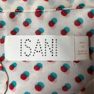 • Color: Cream, Red + Teal Polka Dots