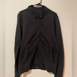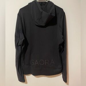Excellent pre worn condition, men’s black on black Isoara Taped Seam Hoodie. Blend of cozy sweatshirt and durable jacket. Lots of pockets-2 front, 2 side/hand warmer pockets and a clever key/credit card pocket on the left sleeve. No imperfections. All items from a dog friendly, smoke free home and ship next biz day.