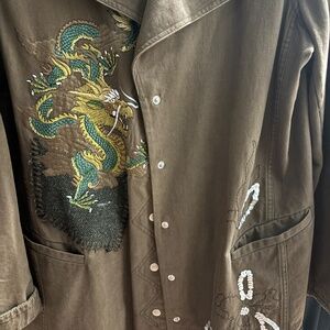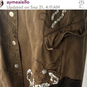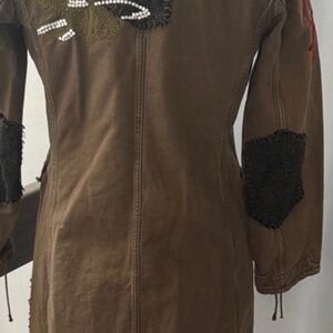 Isda & Co Dark brown brushed cotton embroidered and sequined coat
