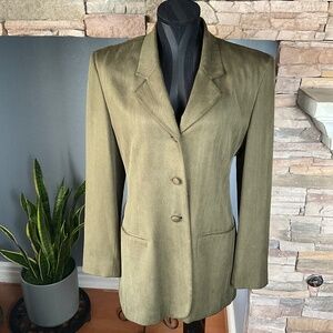 Isda & Co Silk Herringbone Minimalist Fall Pleated Blazer Capsule Olive Green 4