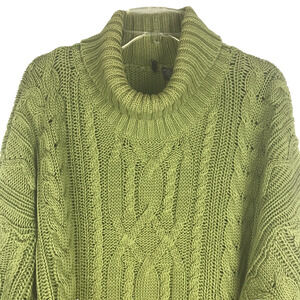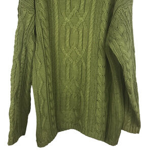 Isda & Co Turtleneck Cable Knit Fisherman Sweater 100% Cotton Green Women's Size Large