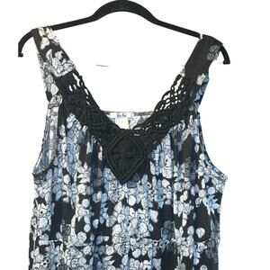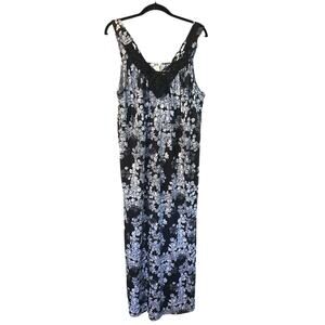 Isela Black & White Floral Maxi Dress with Macrame Crochet Detail Womens XL