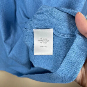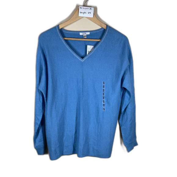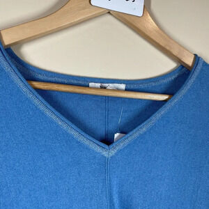 Isela NWT Blue V Neck Sweater Long Sleeve Super Soft Metallic Thread Size S