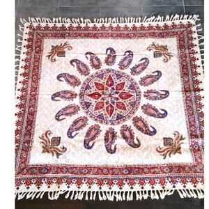 Isfahan Shalamkar 120x120 table cloth cover rug Multicolor Calico