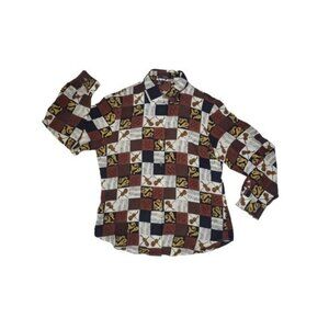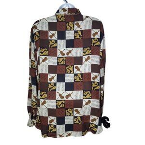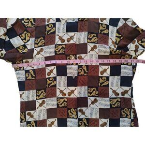 Ishyu 100% Silk Violin Music Patchwork Button Up Blouse Top 14/L