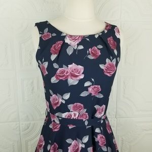 Iska London navy blue & pink rose print modest fit & flare dress, removed tags and never wore.
