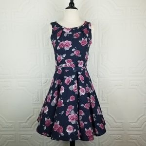 Iska London Navy Rose Fit & Flare Dress NWOT