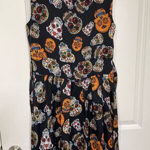 Sugar Skull Dress, Day of the Dead, Halloween Dress, Sleeveless Dress, Fit and Flare, Gothic Fashion, Festival Outfit, Alternative Style, Printed Dress, Colorful Skull Dress, Spooky Style, Rockabilly, Retro Inspired, Bold Print Dress, whimsigoth