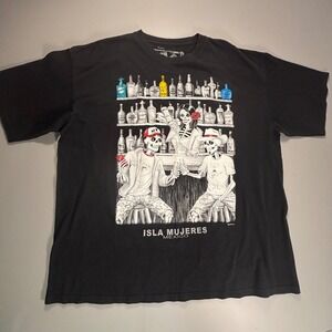 Isla Mujeres Mexico Tan Tan Graphic T-Shirt Skeleton Tequila Bar XXL