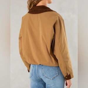 This classic barn jacket features an adjustable waist toggle for a customizable fit, with contrast corduroy detailing at the collar, pockets, and along the zipper liner.