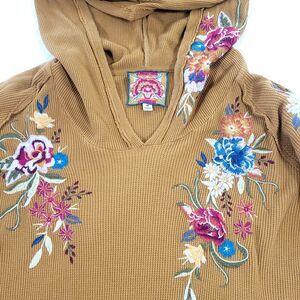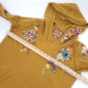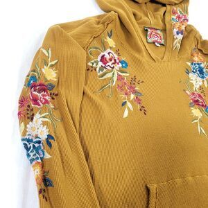 Isla Thermal floral Embroidered Hoodie Johnny Was M Mustard Yellow Cotton Boho