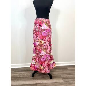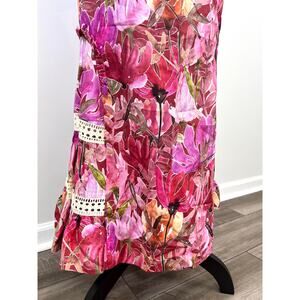 Isla & White Berta Summer Floral Caribbean Midi Skirt in Pink Multi Medium Lined