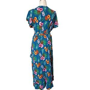 Island Batiks Hawaiian Pineapple Floral Wrap Dress Rayon M L Resort Style