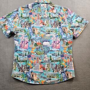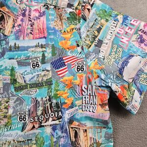 Island Crew Aloha Shirt Mens 2XL California State Print Yosemite Route 66 Travel