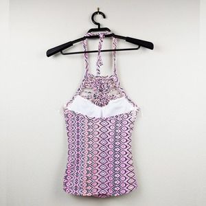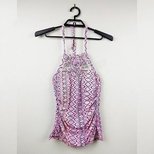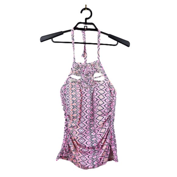 Island Escape Sz 8 Pink Rinconi Shirred Halter Tankini Top