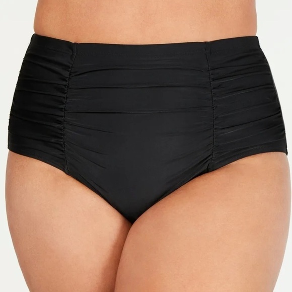 Island Escape BLACK Plus Size High-Waist Bikini Swim Bottoms