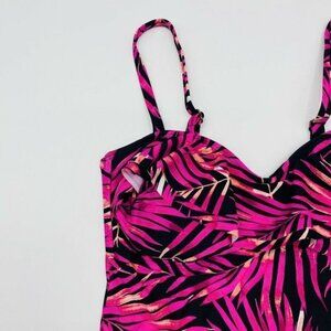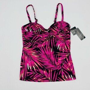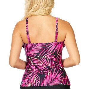 Island Escape Women's Beach Bound Tahiti Printed Tankini Top in Black/Pink