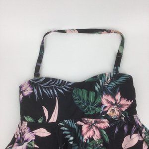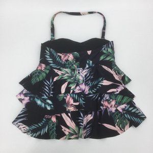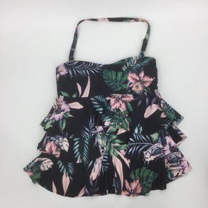 New with tags Island Escape San Joaquin Tiered Womens Tankini Swim Top. Adjustable removable strap; Removable padded cups. Black pink with floral prints. Size six.