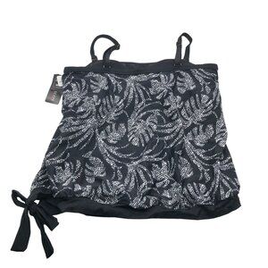 Island Escape Black White Tankini Swim Top Waist Minimizer Adjustable Straps 10