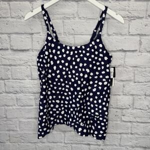Island Escape Cape Town Tankini Top Navy Blue White Dot Size 6 Underwire New