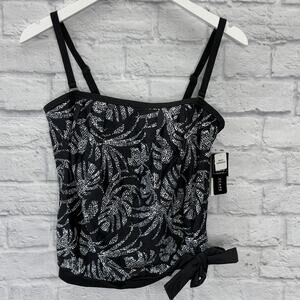 Island Escape Coral Gables Printed Blouson Bandeau Tankini Top Size 10 Black New