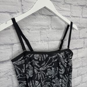 Island Escape Coral Gables Printed Blouson Bandeau Tankini Top Size 8 Black New