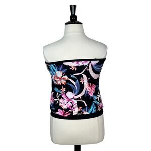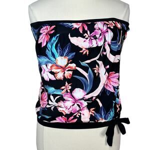 Island Escape Floral Flowy Tankini Loose Fitting Black Women 12 NWT Tie Waist