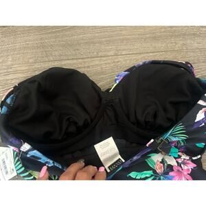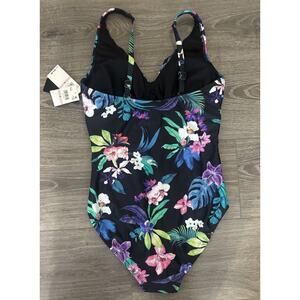 Island Escape Monterey One Piece Underwire Black Floral Swimsuit Size 6 (e1)