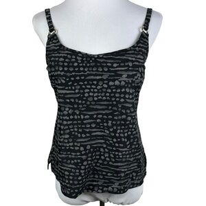 Island Escape Padded Bra Tankini Top Women's Medium-Large Black Gray Pattern